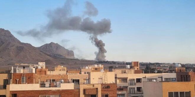— تُظهر صورةٌ متداولة على الانترنت، تحققت من موقعها الجغرافي شبكة عمودًا كثيفًا من الدخان الأسود قرب مدينة أصفهان الإيرانية.