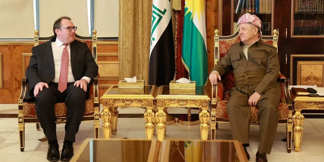 وقال بيان لرئاسة الإقليم، إن “الرئيس مسعود بارزاني، استقبل اليوم في صلاح الدين (پیرمام)، جوشوا هاريس، القائم بأعمال السفارة الأميركية في العراق، ويندي غرين، القنصل العام الأمريكي في إقليم كوردستان”.