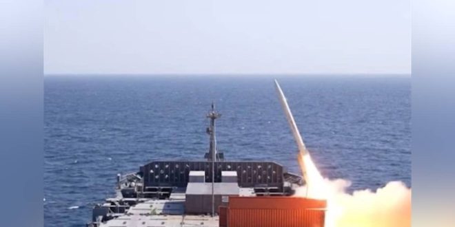 ونشرت وكالة تسنيم لقطات من لحظة إطلاق الصاروخين من السفينة مهدوي.