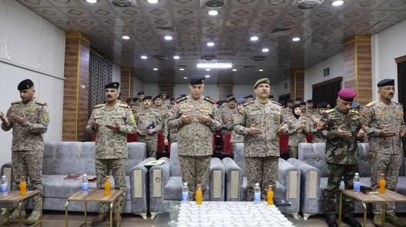 استُهل الحفل بكلمة ترحيبية، أعقبها عزف “سلام الأمراء” وتلاوة آيات من الذكر الحكيم، ثم قراءة سورة الفاتحة وقوفاً ترحماً على أرواح شهداء العراق، تلتها كلمة آمر الدورة.