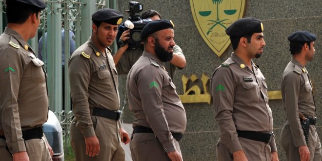 وقال الأمن العام السعودي في منشور عبر حسابه الرسمي على منصة “إكس”، تويتر سابقا، إن “إدارة التحريات والبحث الجنائي بشرطة منطقة الرياض، قبضت على مقيم ووافدين بتأشيرة زيارة من الجنسية السورية”.
