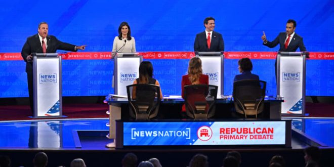 – هاجم ديسانتيس وراماسوامي هيلي مرارا وتكرارا، في الوقت الذي يكافح فيه المرشحان للظهور كبديل رئيسي للرئيس السابق، دونالد ترامب، ونيل ترشيح الحزب الجمهوري، مع أقل من ستة أسابيع حتى المؤتمرات الحزبية المهمة في ولاية أيوا، في حين انتقدت كريستي راماسوامي لتغيير مواقفه، ودافعت عن هيلي ضد هجماته.