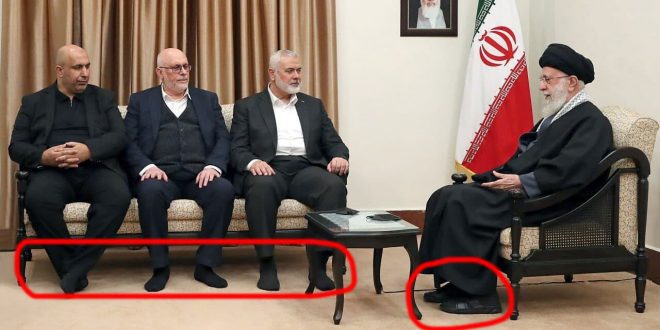 بلا أحذية وخامنئي يرتدي حذاءه.. صورة إسماعيل هنية ووفد ح-ما-س بإيران تثير تفاعلا