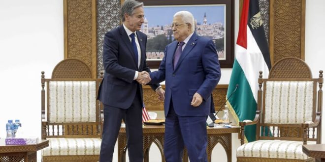 التقى وزير الخارجية الأمريكي، أنتوني بلينكن برئيس السلطة الوطنية الفلسطينية محمود عباس “أبو مازن” في رام الله، الأحد، وسط تصاعد عنف المستوطنين في الضفة الغربية في أعقاب هجوم حر م ا س على إسرائيل، في 7 أكتوبر/تشرين الأول الماضي.