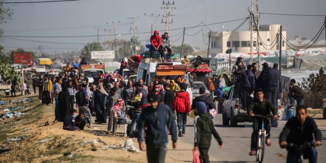 فر آلاف النازحين الفلسطينيين من خان يونس جنوب قطاع غ-زة، بعد أن قال الجيش الإسرائيلي إنه حاصر المدينة وسط عمليات إضافية غرب المنطقة.