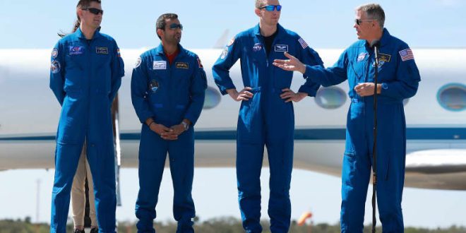 ويضم الطاقم 4 رواد فضاء أدوا مهمة علمية في محطة الفضاء الدولية لمدة 6 أشهر قبل أن يعودوا إلى الأرض وتحط مركبتهم الفضائية في ولاية فلوريدا الأمريكية.