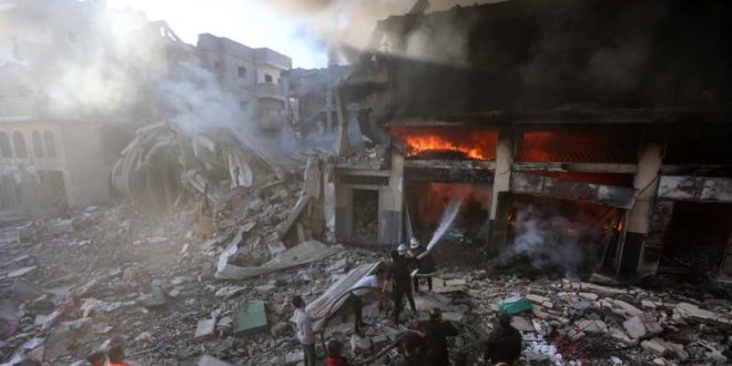 كانت إسرائيل أصدرت، السبت، “نداءً عاجلاً” آخر للإخلاء – طلبت هذه المرة من المدنيين في خان يونس الانتقال إلى منطقة المواصي على الساحل، وبها القليل من المرافق. ومن غير الواضح عدد الأشخاص الذين كانوا على علم بهذه التعليمات نظرًا لعدم وجود شبكات اتصالات وتوافر الإنترنت في معظم أنحاء غ-زة.