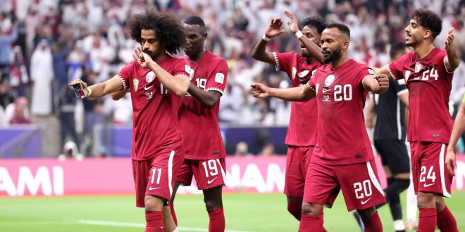احتفل أكرم عفيف، لاعب منتخب قطر، بهدفه في مرمى منتخب الأردن بطريقة لافتة، خلال مواجهة الفريقين على أرض استاد لوسيل، مساء السبت، في نهائي كأس آسيا.