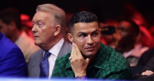 أظهرت لقطات مصورة حضور كريستيانو رونالدو، لاعب نادي النصر، لنزالات اليوم الحاسم “Day of Reckoning” لأبطال الملاكمة حول العالم، السبت، ضمن فعاليات موسم الرياض 2023، في المملكة العربية السعودية. وظهر النجم البرتغالي وهو يجلس إلى جانب تركي آل الشيخ، رئيس الهيئة العامة للترفيه في السعودية، وعدد من شخصيات رياضية شهيرة، …